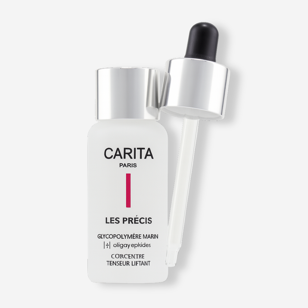 Carita Paris Les Précis Concentré Tenseur Liftant er et intensivt liftende koncentrat, der målrettet arbejder på at opstramme og udglatte huden. Med en højeffektiv formel beriget med glycopolymère marin og oligopeptider, hjælper serummet med at forbedre hudens elasticitet og fasthed, samtidig med at fine linjer og træthedstegn reduceres.
